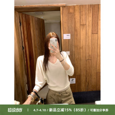 柒月末 慵懒至上 100天丝慵懒风V领短袖T恤女春针织蝙蝠袖罩衫