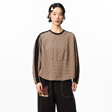 MOVEUP幻走2025秋季新款.FUN系列蝙蝠袖间条拼接织唛短款T恤女
