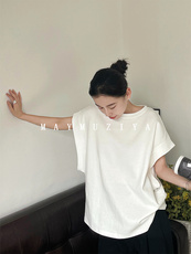 设计感小众不规则下摆短袖T恤女夏季韩版大码宽松纯棉蝙蝠袖上衣