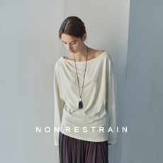 NON RESTRAIN简约褶皱斜肩针织长袖T恤女慵懒感蝙蝠袖一字领上衣