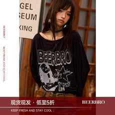 A BEAN abg辣妹 慵懒斜肩不对称蝙蝠袖宽松T恤 y2k设计感露肩短袖