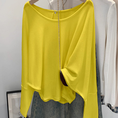 NON RESTRAIN法式慵懒感一字领斜肩气质上衣女宽松显瘦蝙蝠袖T恤