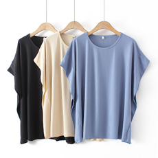 莫代尔蝙蝠袖T恤夏季新款圆领宽松上衣韩版纯色胖mm显瘦女打底衫
