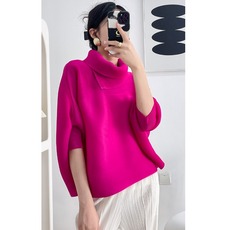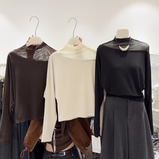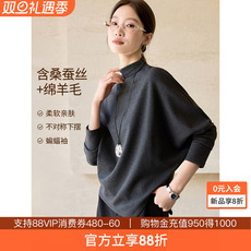 沫晗依美ROW风解构廓形含羊毛T恤2025冬季半高领蝙蝠袖长袖打底衫