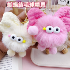 真獭兔毛蝴蝶结小兔子汽车钥匙扣挂件可爱毛绒垂耳兔兔玩偶包挂饰