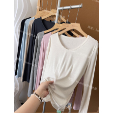 秋季柔软云朵感羊毛天丝鹅蛋领T恤宽松显瘦舒适慵懒感打底衫上衣
