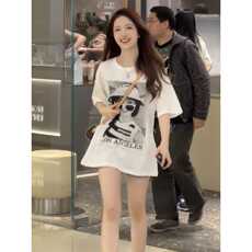白色短袖夏季2025新款宽松洋气百搭t恤女今年流行款显瘦大版上衣