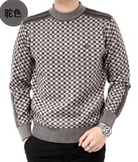 秋冬男式加厚丝光毛衣 中老年圆领套头提花针织衫男士保暖打底衫