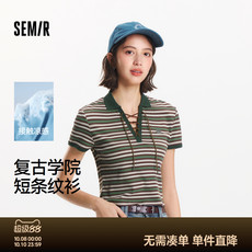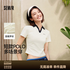 [商场同款]森马POLO衫女短款修身气质2025新款夏季绣花套头衫简约
