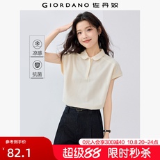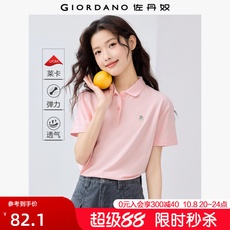 佐丹奴Polo衫女新款气质弹力棉一粒扣门筒七分袖翻领上衣05314786