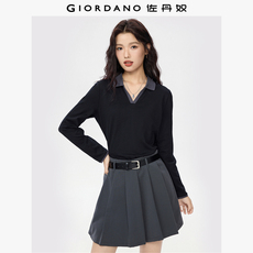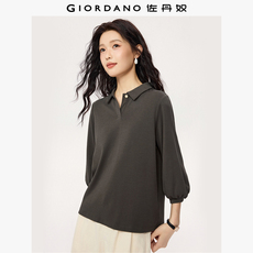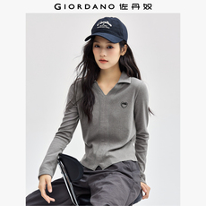 佐丹奴长袖Polo衫女新款纯棉简约纯色金属纽扣翻领上衣女05314783