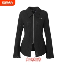 春秋季纯欲设计感小众拉链辣妹上衣女Polo领显瘦开衫长袖T恤大码