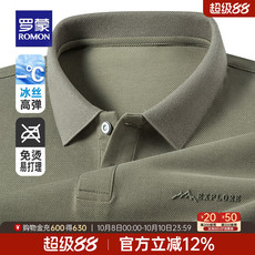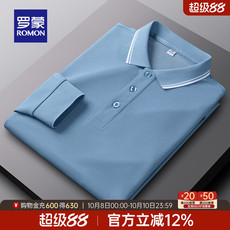 罗蒙男士商务休闲长袖POLO衫2025秋季新款简约百搭翻领透气T恤衫