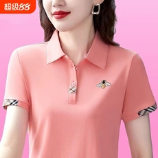 女士t恤短袖夏季polo衫翻领上衣2023新款中老年女装宽松妈妈薄T