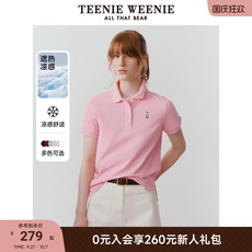 【凉感】TeenieWeenie小熊女装POLO衫2025夏新款简约粉色短袖T恤