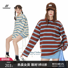 TurnSignal潮牌条纹长袖POLO衫女春秋2025新款休闲宽松翻领上衣
