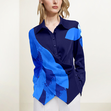 民族风 2023秋装新款原创女装修身百搭木耳边印花衬衫上衣