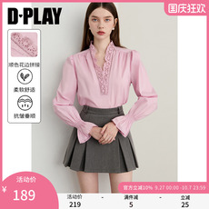 DPLAY2025秋季新款休闲通勤蓝色衬衫女气质圆领条纹上衣长袖衬衣