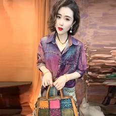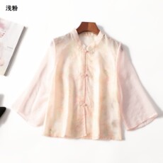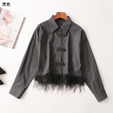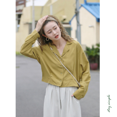 246175 秋衬衫 女短款七分袖单排扣现货