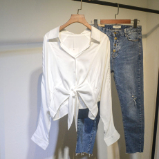 R单,免烫易打理!早秋设计感~廓形小短款花苞下摆甜辣衬衫上衣女