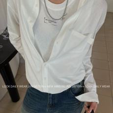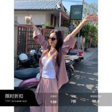 陆与山屿设计款工艺女士衬衫短袖夏季白色防晒衫上衣短款衬衣外套
