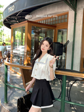 【象牙塔】Uena白色蕾丝拼接荷叶边大方领短款宽松泡泡短袖衬衫女