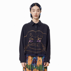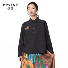 MOVEUP幻走2024秋季新款.FUN系列不对称趣味绣花设计师短款衬衫女