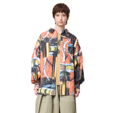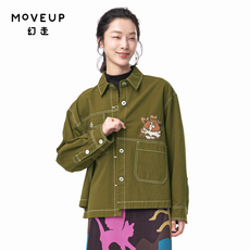 【商场同款】MOVEUP幻走2025秋季新款纯棉印花贴袋弧形短款衬衫女