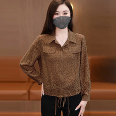 北美单秋季新品翻领单排扣长袖短款贴袋绉纱V领通勤休闲衬衫女