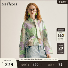 嘉茱莉2025春季新款MIU系格纹小个子短款衬衫女设计感翻领衬衣