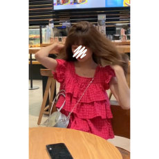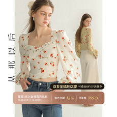 从那以后安妮画报法式碎花小衫泡泡袖复古衬衫方领短款露脐上衣女