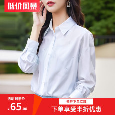 港风气质V领长袖白色衬衫女2025新款早秋款气质通勤衬衣短款上衣
