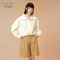 艺野系 日系小个子收腰短款圆领白色长袖工装衬衫女夏设计感上衣