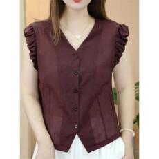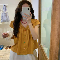 小飞袖v领单排扣薄款衬衫女短款2025夏季新款小个子上衣漂亮小衫