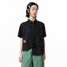 MOVEUP幻走2024夏季新款.FUN系列趣味印花口袋设计纯棉短款衬衫女