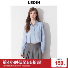 IMCC设计感小众蓝色纯棉短款衬衫女春夏翻领纯色长袖衬衣上衣ins