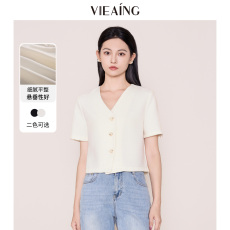 VIEA.ING薇迎短袖衬衫女2025夏季新款通勤衬衣小个子短款V领上衣