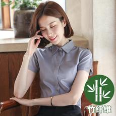 竹纤维白衬衫女短袖夏季新款职业装工作服上班工装女士蓝色衬衣灰