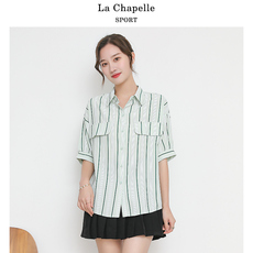 拉夏贝尔气质条纹衬衫春秋新女士长短袖休闲百搭开衫外套上衣女Y