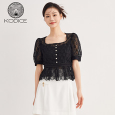 夏季新款复古甜美风琴褶上衣女士全棉气质衬衫花边短袖单排扣衬衣
