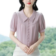 大码女装2025夏装新款女士泡泡袖衬衫短袖雪纺小衫减龄遮肚子衬衣