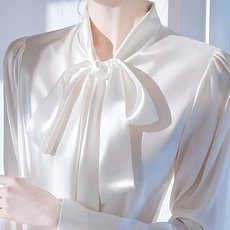 法式蝴蝶结系带白色缎面衬衫女2025早春新款高端内搭长袖职业衬衣