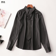 欧洲站2025秋季新款PH23绑带领纯色简约长袖衬衫女休闲衬衣3957