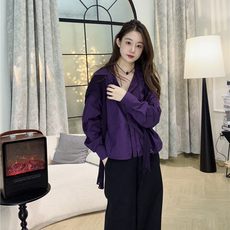 同裳高端定制衬衫衬衣长袖时尚休闲百搭宽松紫色韩版立领纯色9-15