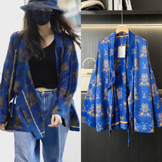 欧洲站2025秋装新款翻领复古印花长袖衬衫宽松休闲百搭衬衣小开衫