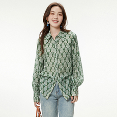 2025年秋Outlets正品 高端YS系列文艺清新印花上衣长袖好搭衬衫女
