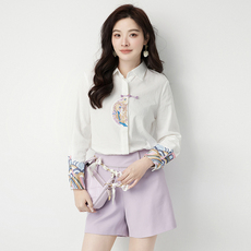 2025年春装Outlets专柜 高端ZW系列国风绣花拼接长袖中长款衬衫女