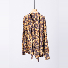 zhi+元厂料!16姆米桑蚕丝素绉缎!进口印花飘带长袖衬衫25年春夏