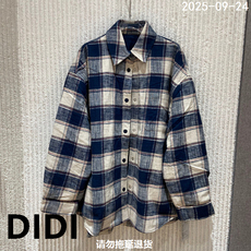 欧洲站2025秋季新款翻领单排扣加厚夹棉长袖格子衬衫女251106