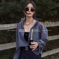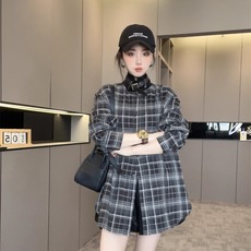 欧洲站2025早秋新款时尚翻领长袖格子绵羊毛衬衫女款上衣潮欧货